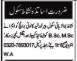 Vacancies in Nishat Boys High School Advertisement September 2024