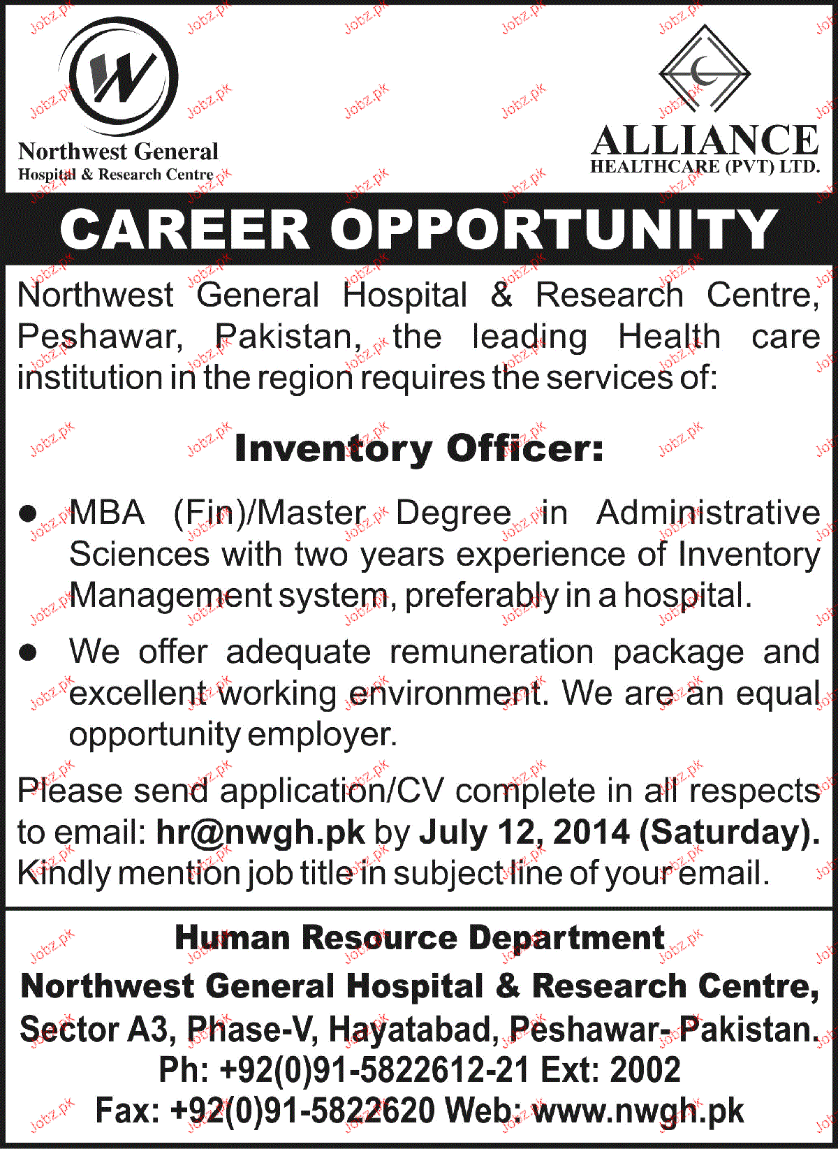Apply as per details in job advertisement. Login to view further details of how to apply via https://www.jobz.pk online.