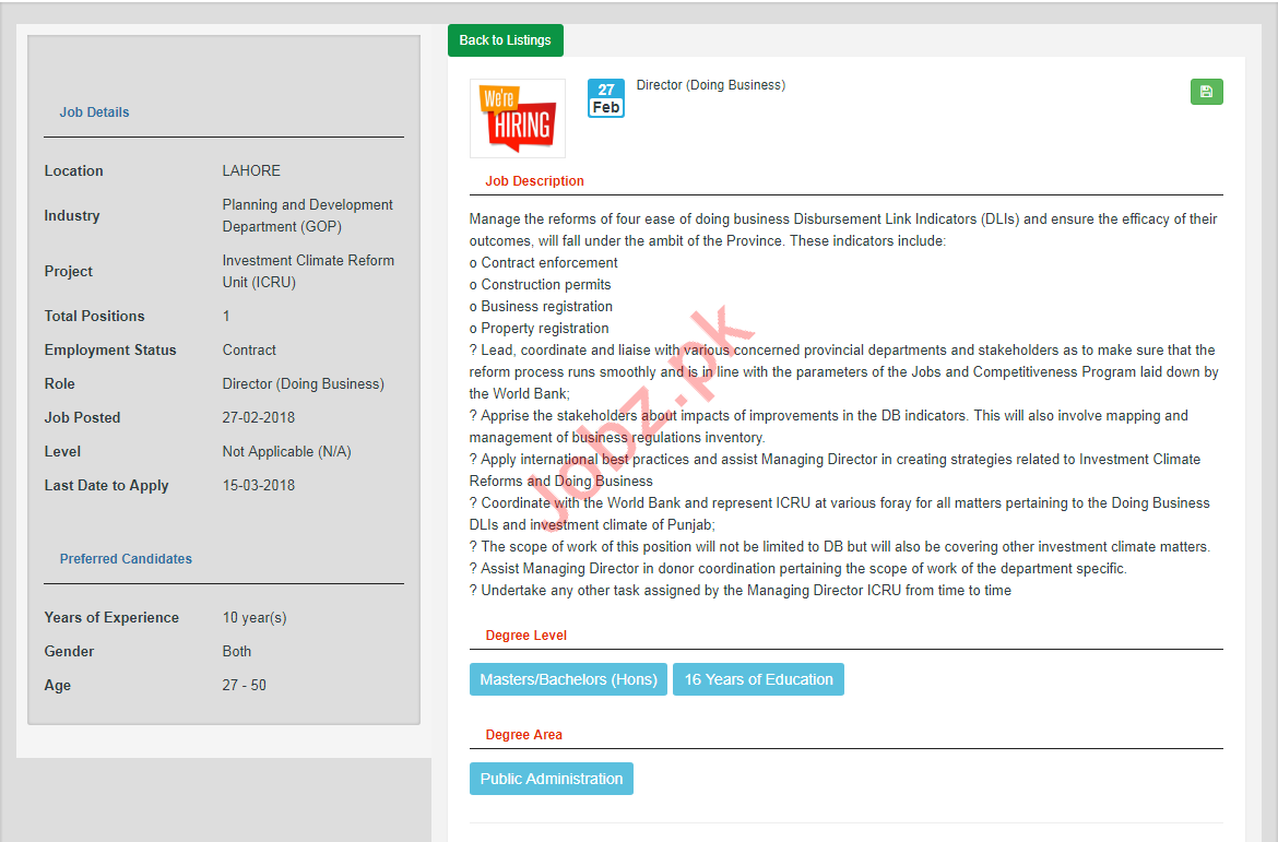 Investment Climate Reform Unit ICRU Lahore Jobs 2018