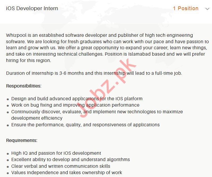 Latest Whizpool Software Outsourcing & Consulting Company Internship Posts Islamabad 2025