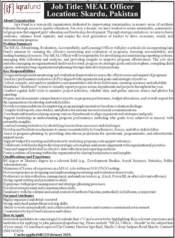 Iqra Fund Skardu Jobs 2025 for MEAL Officer