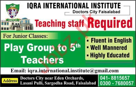 Latest Iqra International School Education Posts Faisalabad 2025