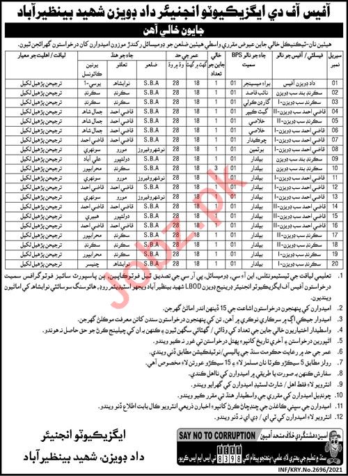 Irrigation Department DAD Division Shaheed Benazirabad Jobs