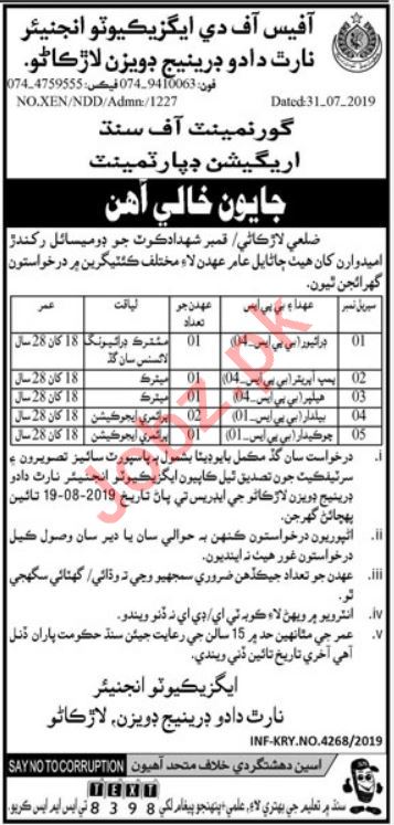 Irrigation Department Jobs 2019 For Larkana