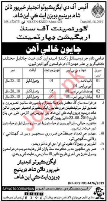 Irrigation Department Jobs 2019 in Nawabshah
