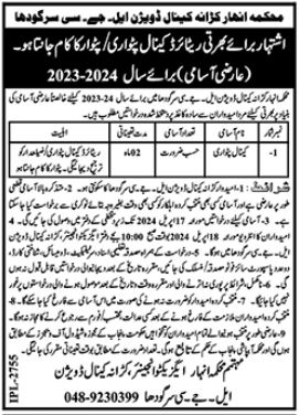 Irrigation Department Karana Canal Division LJC Jobs 2024