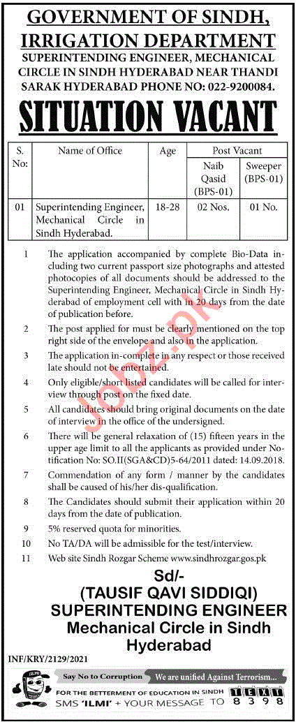Irrigation Department Mechanical Circle Hyderabad Jobs 2021