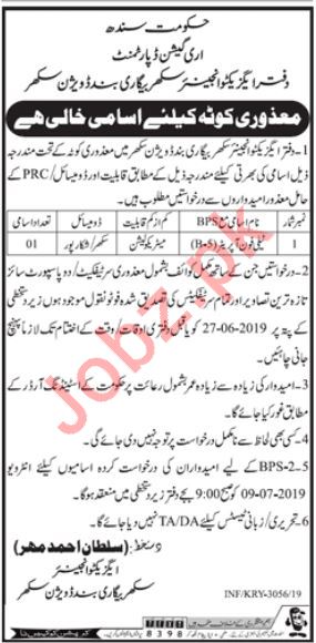 Irrigation Department Sukkur Telephone Operator Jobs 2019