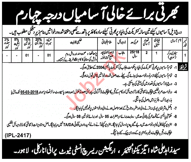 Irrigation Research Institute IRI Lahore Jobs 2018