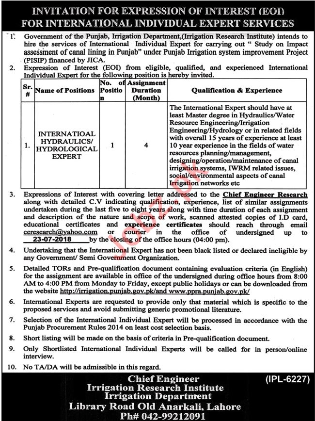 Irrigation Research Institute IRI Lahore Jobs 2018