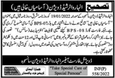 Forestry Environment and Wildlife Department is looking for candidates for following posts as per job advertisement published in daily Mashriq Newspaper of February 2, 2022 for location Mansehra Khyber Pakhtunkhwa KPK Pakistan: