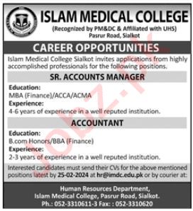 Latest Islam Medical College Accounting Posts Sialkot 2025