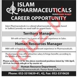 Islam Pharmaceuticals Sialkot Jobs 2019 for Managers