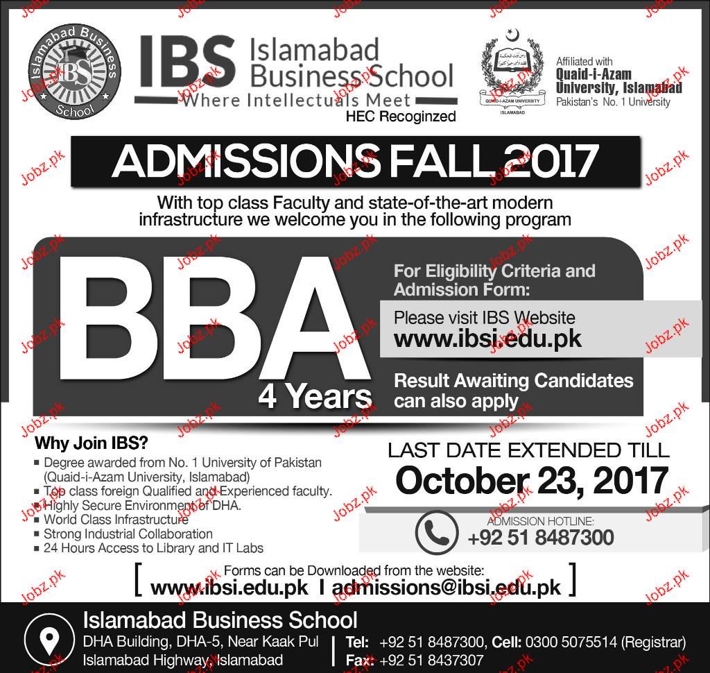 Islamabad Business School IBS Admission in BBA in Islamabad. Read newspaper ad for exact details.