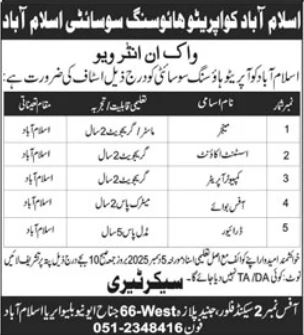 Vacancies in Islamabad Cooperative Housing Society ICHS Advertisement December 2025