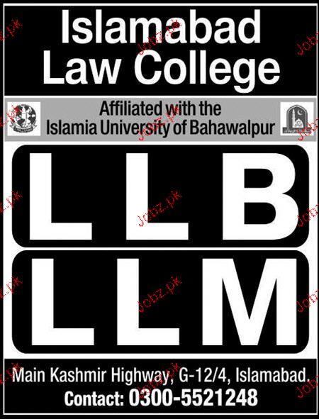 Islamabad Law College Admission in LLB and LLM in Islamabad. Read newspaper ad for exact details.