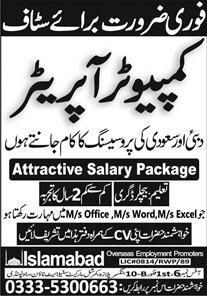 Latest Islamabad Overseas Employment Promoter Computer Posts Rawalpindi 2025