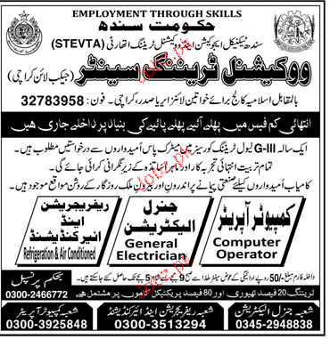 Vocational Training Cener Islamia College For Women Lines Area Karachi Admission in G-III Level Training Courses, Compute Operator and General Electricians in Karachi. Read newspaper ad for exact details.