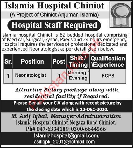 Islamia Hospital Chiniot Jobs 2020 for Neonatologist