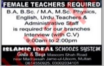 Latest Islamic Ideal Schools System Teaching Posts Multan 2025