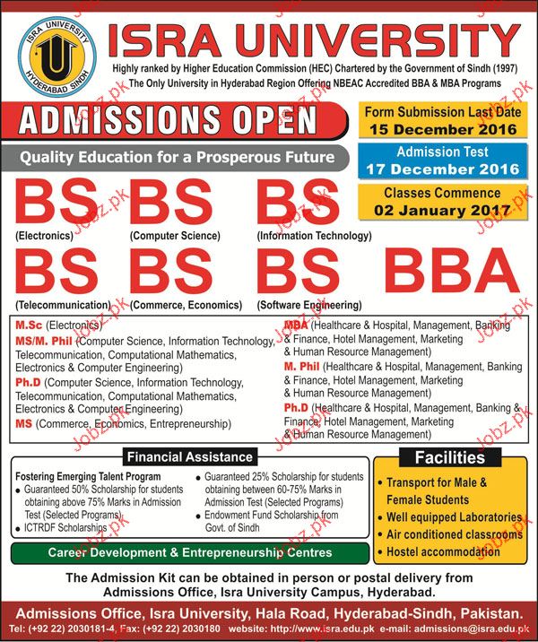 ISRA University Admission in BS and BBA in Hyderabad. Read newspaper ad for exact details.