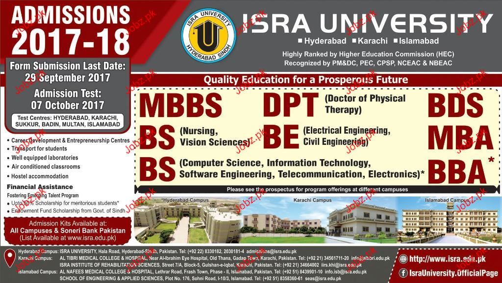 ISRA University Admission in BS, BBA, MS and Mphill in Lahore. Read newspaper ad for exact details.