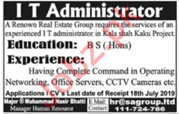IT Administrator Job 2019 For Kala Shah Kaku Project