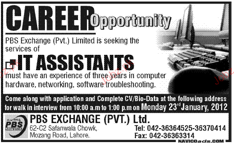 Apply as per details in job advertisement. Login to view further details of how to apply via https://www.jobz.pk online.