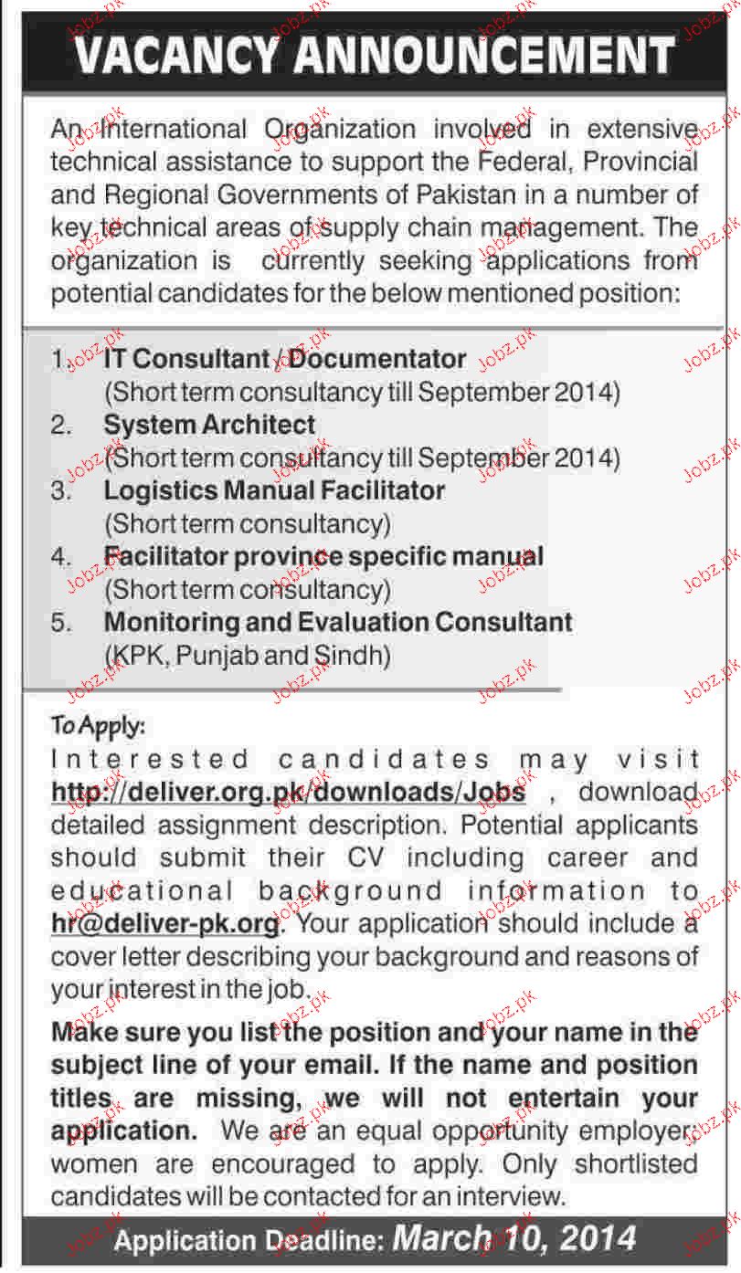 Apply as per details in job advertisement. Login to view further details of how to apply via https://www.jobz.pk online.