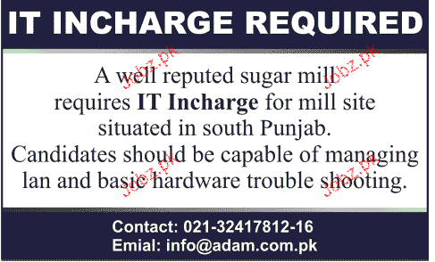 IT Incharge Job Opportunity