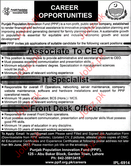 IT Jobs In Punjab Population Innovation Fund PPIF