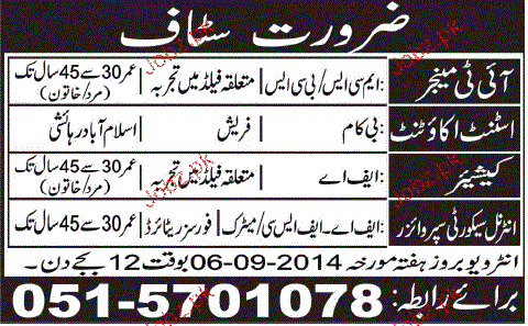 Apply as per details in job advertisement. Login to view further details of how to apply via https://www.jobz.pk online.