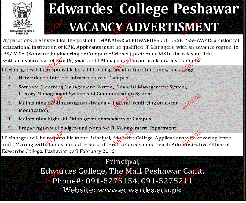 Apply as per details in job advertisement. Login to view further details of how to apply via https://www.jobz.pk online.