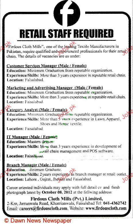 Apply as per details in job advertisement. Login to view further details of how to apply via https://www.jobz.pk online.