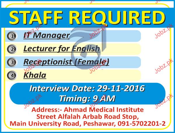 IT Manager, Receptionists, Teachers Job Opportunity