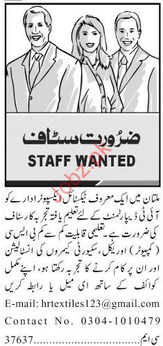 Apply as per details in job advertisement. Login to view further details of how to apply via https://www.jobz.pk online.