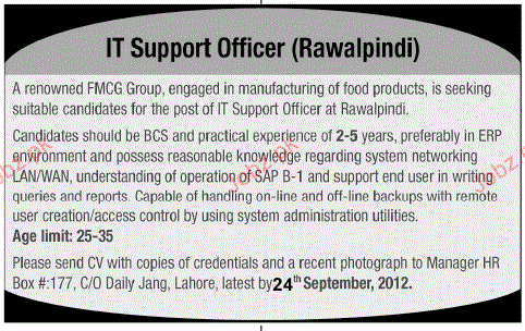 Apply as per details in job advertisement. Login to view further details of how to apply via https://www.jobz.pk online.