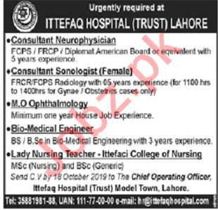 Vacancies in Ittefaq Hospital Trust Advertisement October 2019