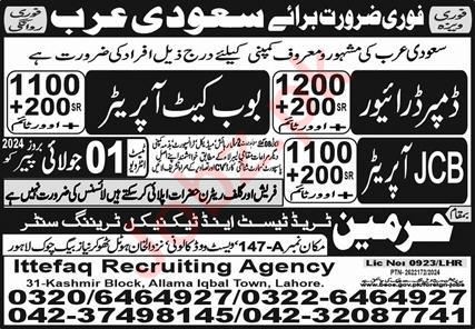 Ittefaq Recruiting Agency is looking for candidates for following posts as per job advertisement published in daily Express Newspaper of July 1, 2024 for location Riyadh, riyadh Saudi Arabia: