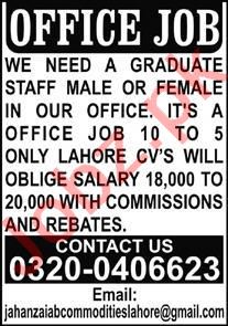 Jahanzaib Commodities Lahore Jobs 2020 for Office Staff