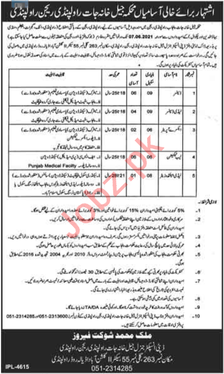 Latest Jail Department Medical Posts Rawalpindi 2025