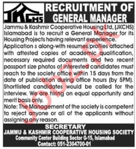 Latest Jammu Kashmir Cooperative Housing Society Ltd Management Posts Islamabad 2025