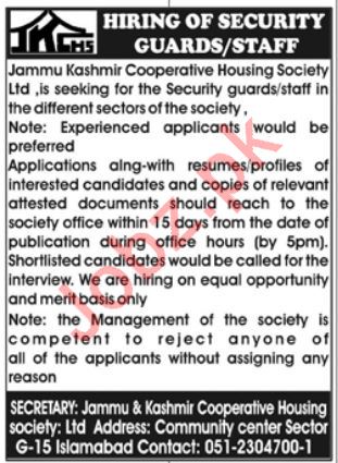 Latest Jammu Kashmir Cooperative Housing Society Ltd Security Posts Islamabad 2025
