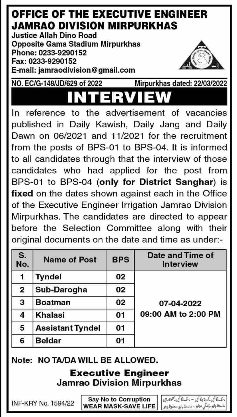 Jamrao Division Mirpurkhas Interviews 2022 Schedule