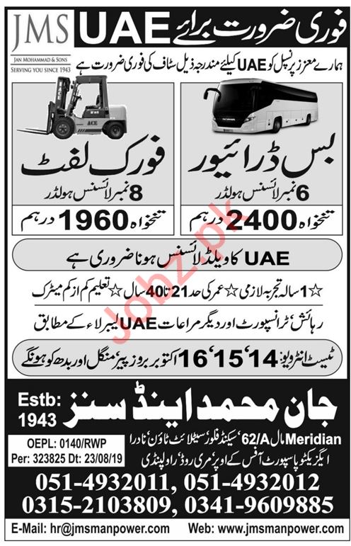 Jan Muhammad & Sons Jobs For United Arab Emirates UAE