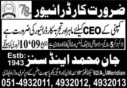 Jan Muhammad & Sons Rawalpindi Jobs 2022 For Drivers