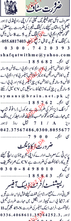 Latest Private Company Admin Clerical Posts Lahore 2025