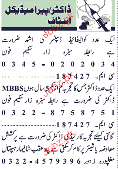 Jang Classified Doctor And Para Medical Staff Wanted