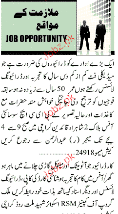 Latest Private Company Driving Posts Karachi 2025