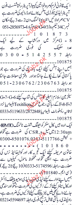 Apply as per details in job advertisement. Login to view further details of how to apply via https://www.jobz.pk online.
